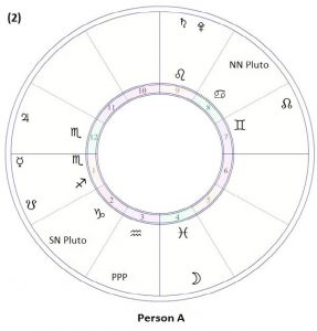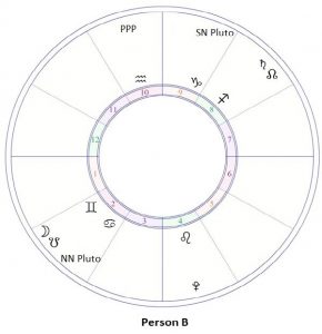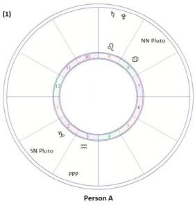 Posmatrajući suptilni paradoks te natalne karte, shvatio sam da je jedna od stvarnosti, koja zaista može biti od koristi u ovom širem razumevanju Plutonovih evolutivnih namera, način na koji su namere Duše implementirane u natalnu kartu kao Plutonova Tačka Polariteta, preko Meseca, njegovih Čvorova i njihovih vladara. I kako se Mesec i njegovi Čvorovi odnose prema Plutonu i njegovim Čvorovima?