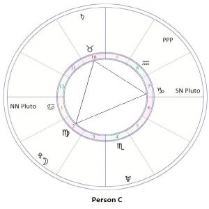 - Plutonov Južni Čvor u Jarcu, u 7. kući, njegov vladar je Saturn u 10. kući, u trigonu sa Plutonom i Plutonovim Južnim Čvorom;